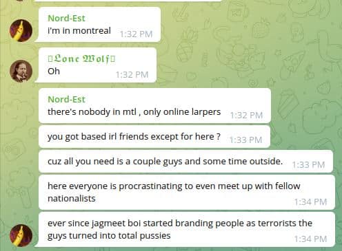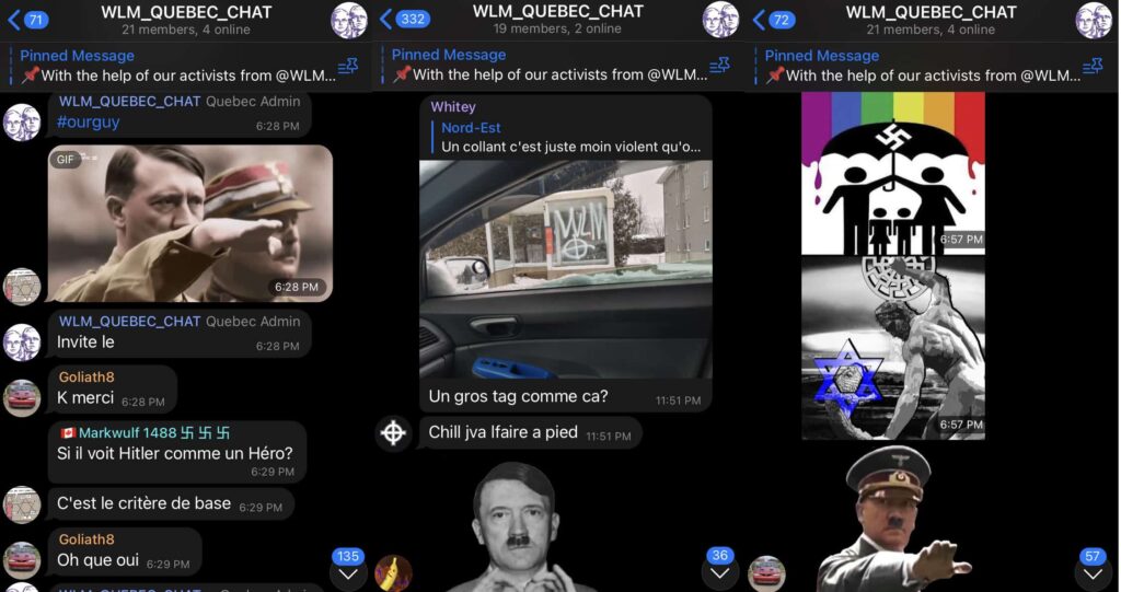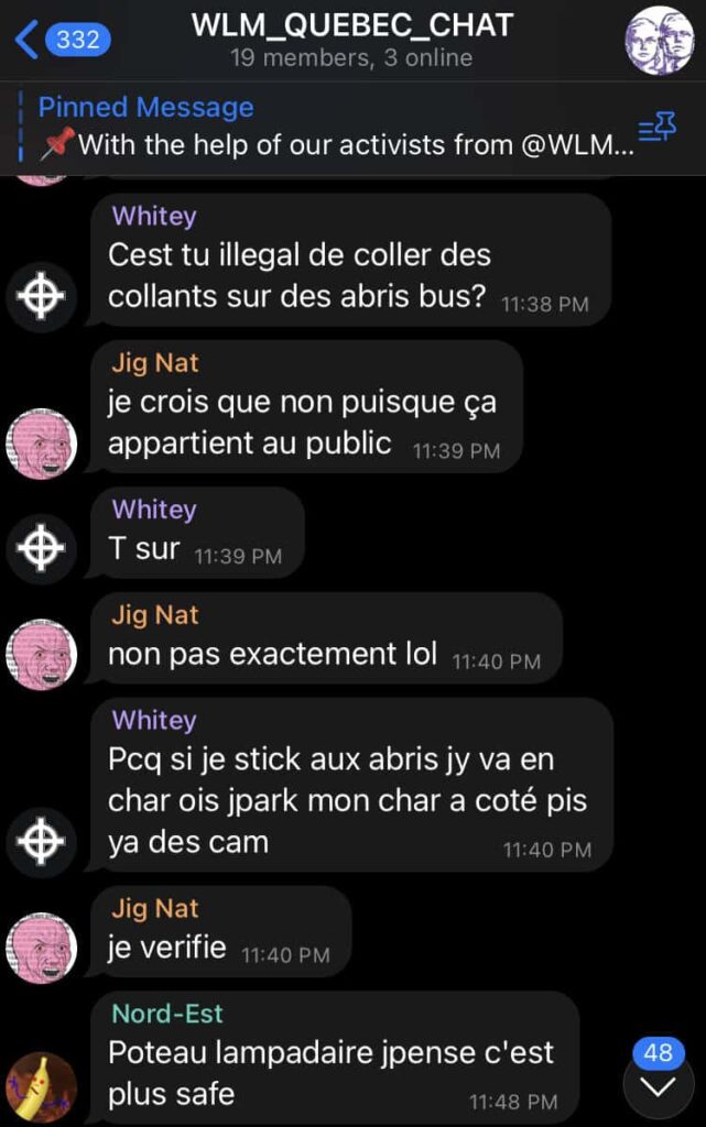 Des néonazis québécois s’organisent et recrutent de nouveaux adhérents sur la plateforme Telegram afin de sortir de derrière leurs claviers pour faire de « l’activisme blanc », poser des autocollants et faire des push-ups ensemble. Derrière une mince façade de respectabilité, des membres du groupe sont des militants néonazis et antisémite connus.