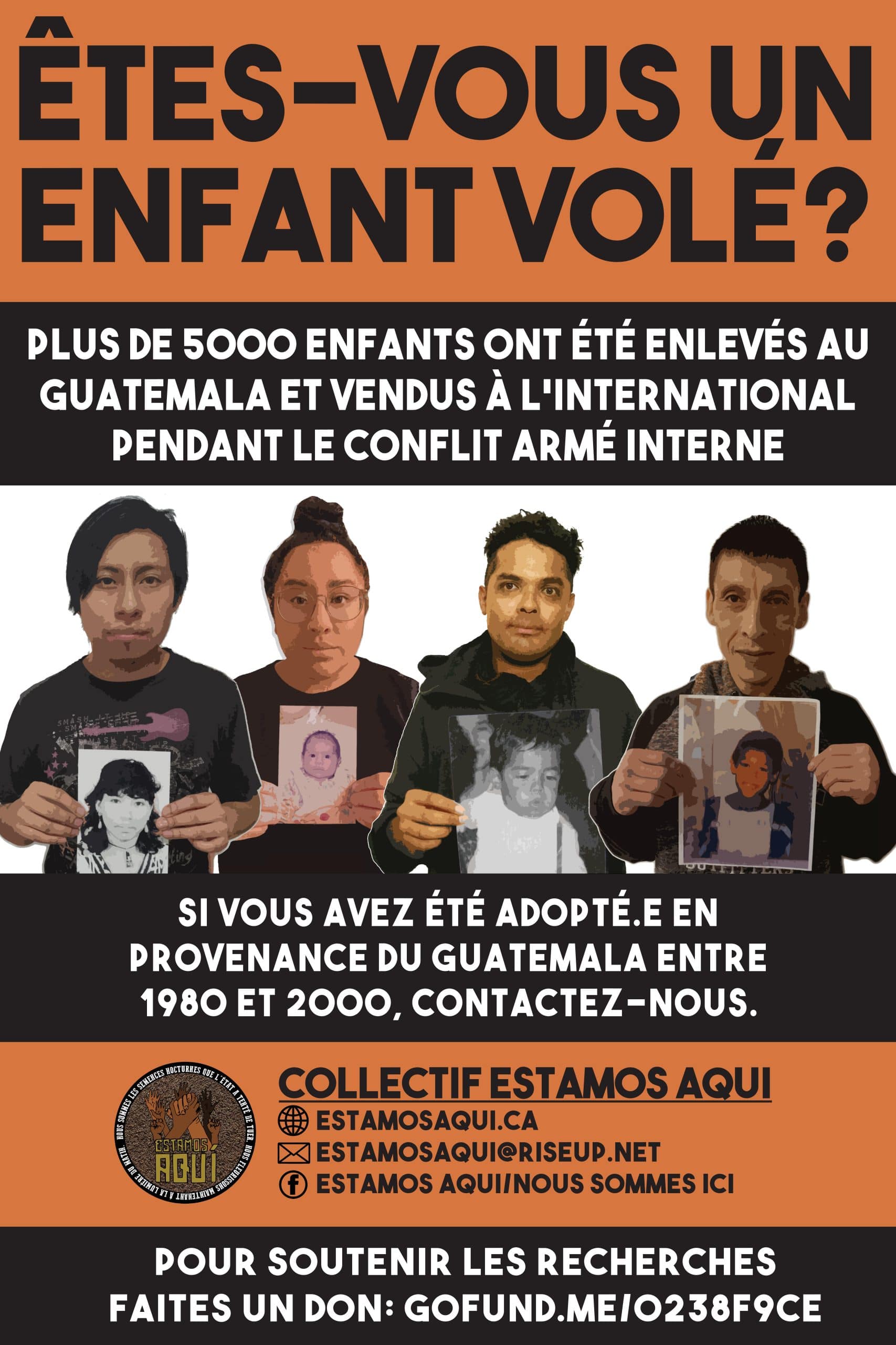 Avec l’appui d’un organisme local, son histoire a été médiatisée et il a été contacté par plusieurs personnes adoptées guatémaltèques. Ces messages l’ont inspiré à fonder son organisme pour adopté·es guatémaltèques, Estamos Aquí (Nous sommes ici), en réponse au collectif guatémaltèque Donde estan los niños y las niñas ? (Où sont les enfants?).