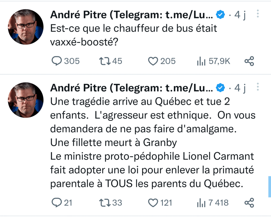 L’autobus du Service de transport de Laval venait à peine de percuter la garderie que les figures de proue du complotisme et de l’extrême droite québécoise s’activaient sur les réseaux sociaux.