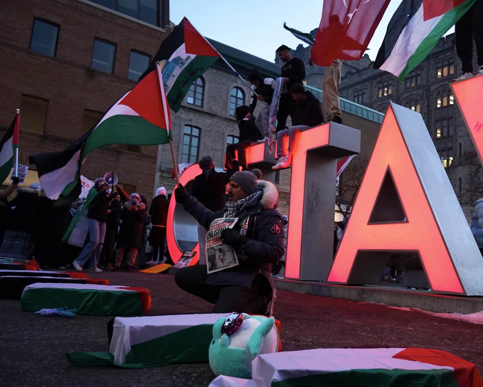 Depuis le 7 octobre, presque chaque jour, des manifestations réunissant des milliers de personnes, des actions, des blocages, des projections ou des pétitions s’organisent afin de demander un cessez-le-feu et la levée du siège à Gaza, ainsi que la fin de la complicité du Canada dans les potentiels crimes de guerre commis par son allié israélien.