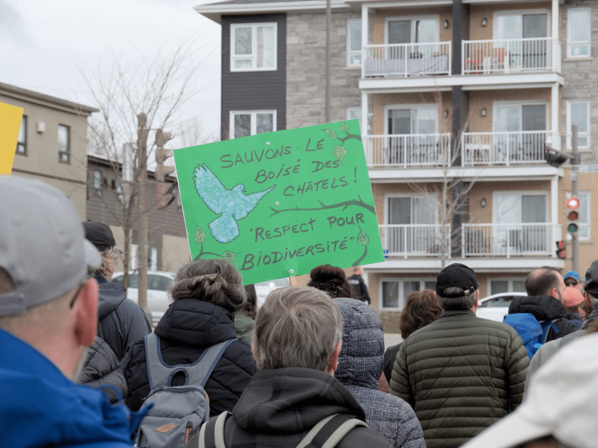 Le samedi 13 avril, environ 200 personnes ont manifesté sur le boulevard de l’Ormière et les rues avoisinantes, en banlieue de Québec. Cette manifestation, organisée par le groupe des Amis du boisé des Châtels, avait pour but de souligner l’opposition au projet de développement immobilier prévu sur un vaste espace vert de 200 hectares.