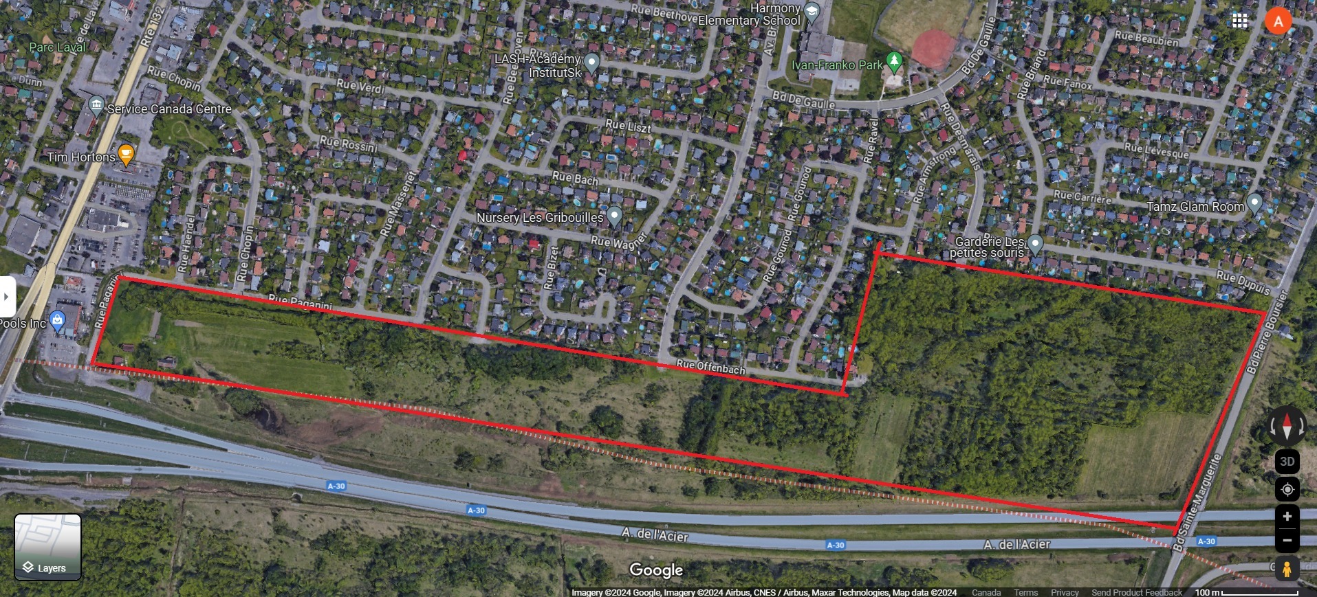La nature exacte du développement immobilier résidentiel envisagé par le promoteur qui possède la terre à Faubert n’est pas connue. Enfin, si le projet est connu par l’administration municipale, aucune information n’a été communiquée aux citoyen·nes de Châteauguay. Une résolution du conseil municipal datant du mois de juin 2023, sur laquelle nous reviendrons, évoque « une densité minimale de 100 logements à l’hectare ».