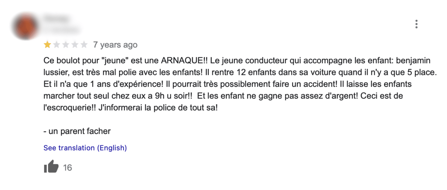 Plusieurs informations récoltées par Pivot sur les réseaux sociaux montrent que Benjamin Lussier aurait travaillé à Ado-Boulot à titre de moniteur. Dans un commentaire laissé sous la fiche Google de l’entreprise, un·e utilisateur·trice dénonce son comportement auprès des jeunes et on lui reproche des pratiques non sécuritaires, en plus de critiquer le modèle d’affaires de l’entreprise.