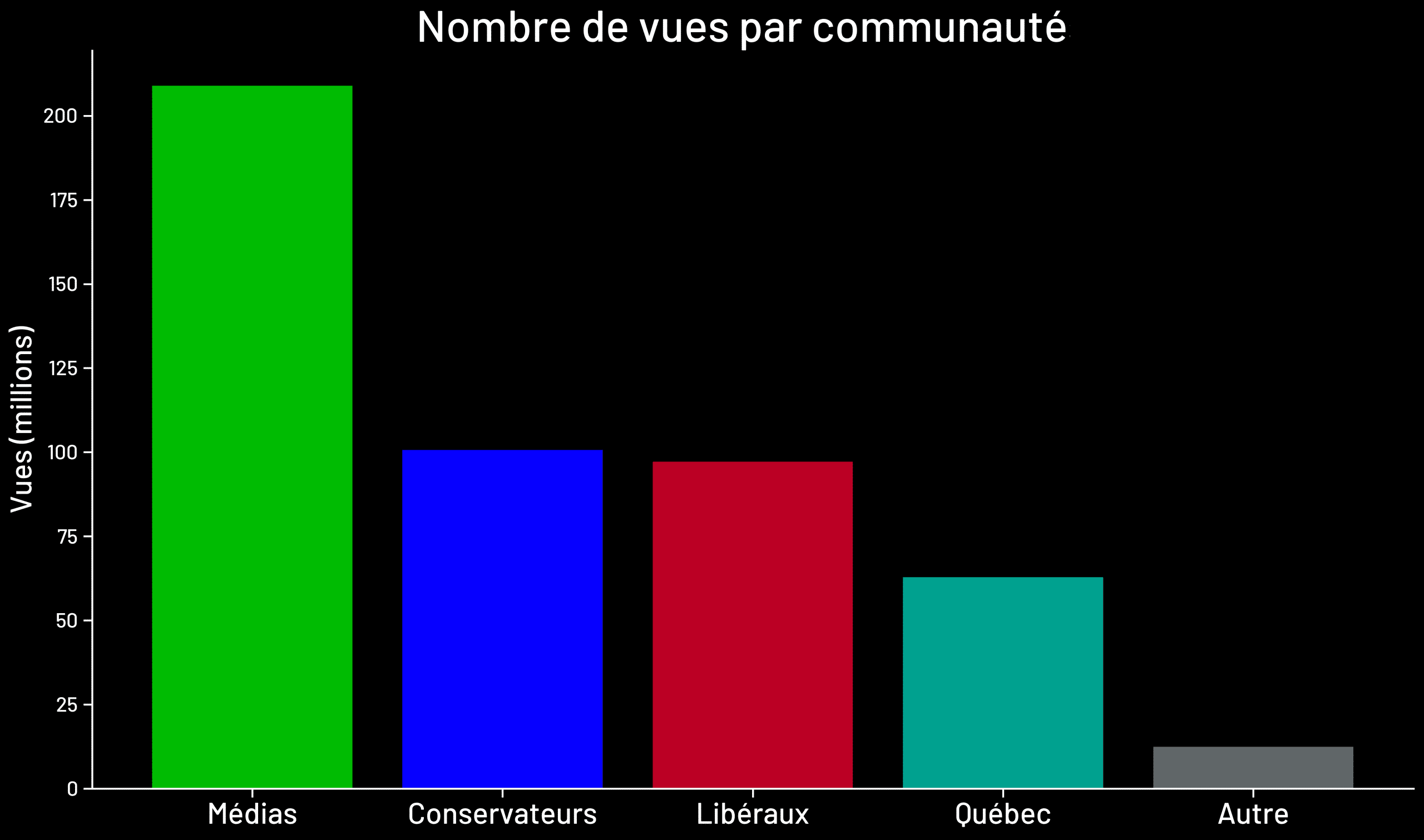 Alors que les vidéos associées aux médias ont obtenu deux fois plus de vues que celles associées au camp conservateur, ces dernières reçoivent presque deux fois plus de commentaires.