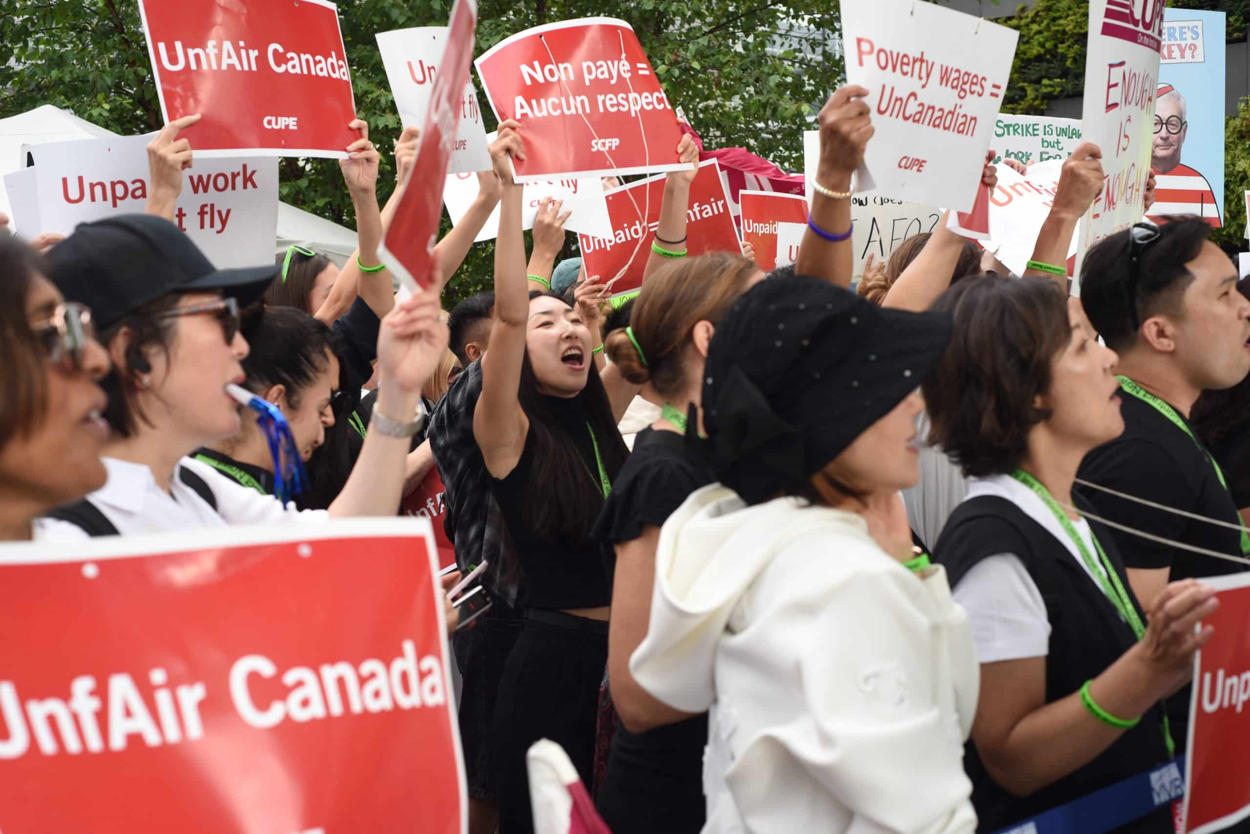 La semaine dernière, la grève des agent·es de bord d’Air Canada, représenté·es par le Syndicat canadien de la fonction publique (SCFP), a paralysé les activités du plus grand transporteur aérien au pays alors que des lignes de piquetage ont été érigées dans les aéroports à travers le Canada.